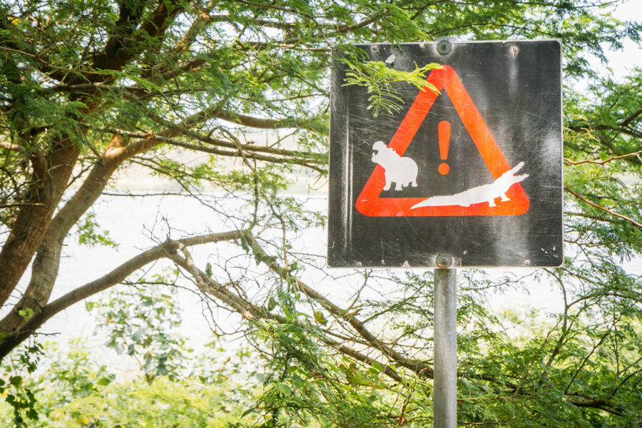 In addition to crocodiles, a shark, and the hippos we encountered, there were plenty of colorful birds to see. We spotted the bright red eyes and strange upside-down nests of the African Golden Weaver, as well as the funny looking Yellow Billed Stork.
